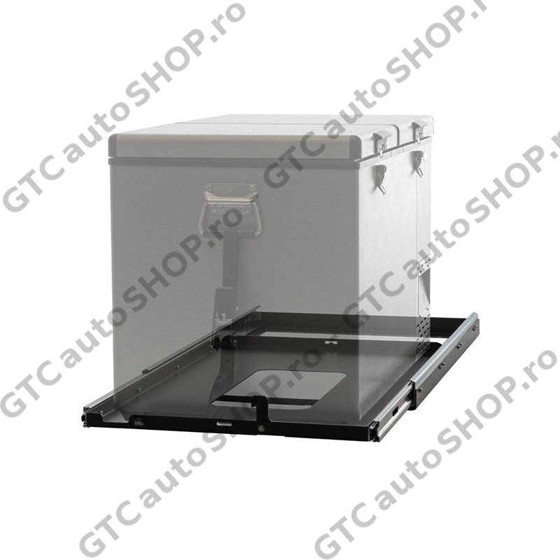 Sistem de culisare de la Front Runner ce permite montarea unui frigider de capacitate mare (capacitate de 80-90L sau mai mic) sau a unor cutii (Cub Pack, Wolf Pack etc.)