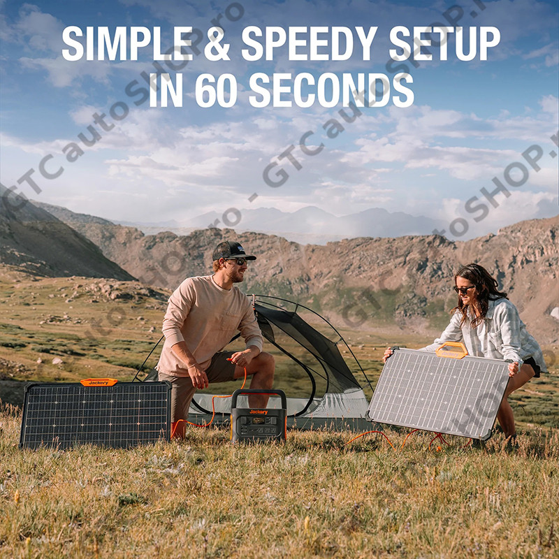 Noul panou solar Jackery SolarSaga este compatibil cu toate statiile electrice de la Jackery fiind o sursa de energie fiabila si sigura. Fabricat din sticla cu grosime de 2.8 mm, aceasta ofera o durabilitate extrem de ridicata panoului solar. Constructia robusta si solida adauga rezistenta fiind. Configurarea si utilizarea acestuia se face foarte simplu si rapid in doar un minut.