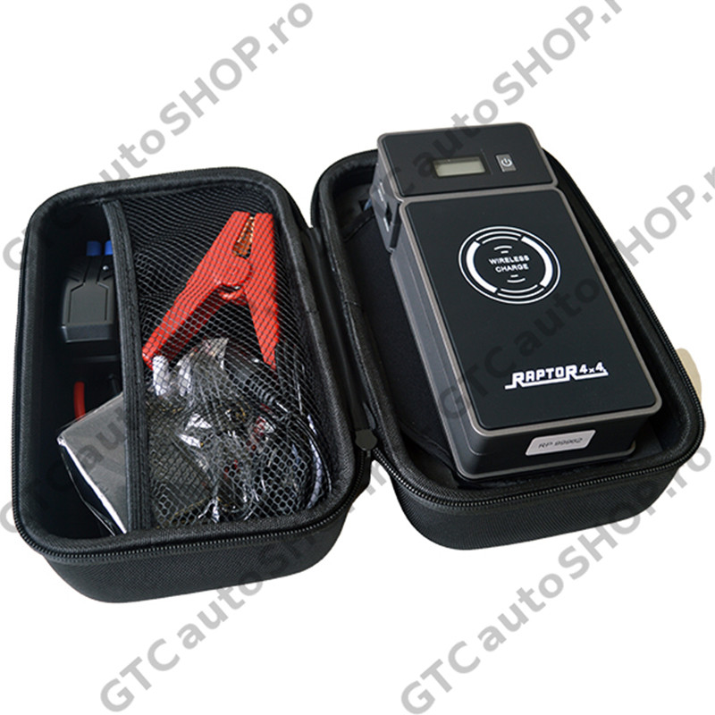 Robotul de pornire “Black Style” de la Raptor 4x4 Italia, este un starter cu acumulator integrat pentru vehicule de 12V. Are capacitate de 44.4 Wh si 600A la pornire. Este potrivit pentru orice categorie de autoturisme, motociclete sau vehicule 4x4, fiind prevazut cu clesti, pentru o utilizare usoara si rapida. Display-ul digital integrat afiseaza statusul incarcarii robotului de pornire si al bateriei autovehiculului.