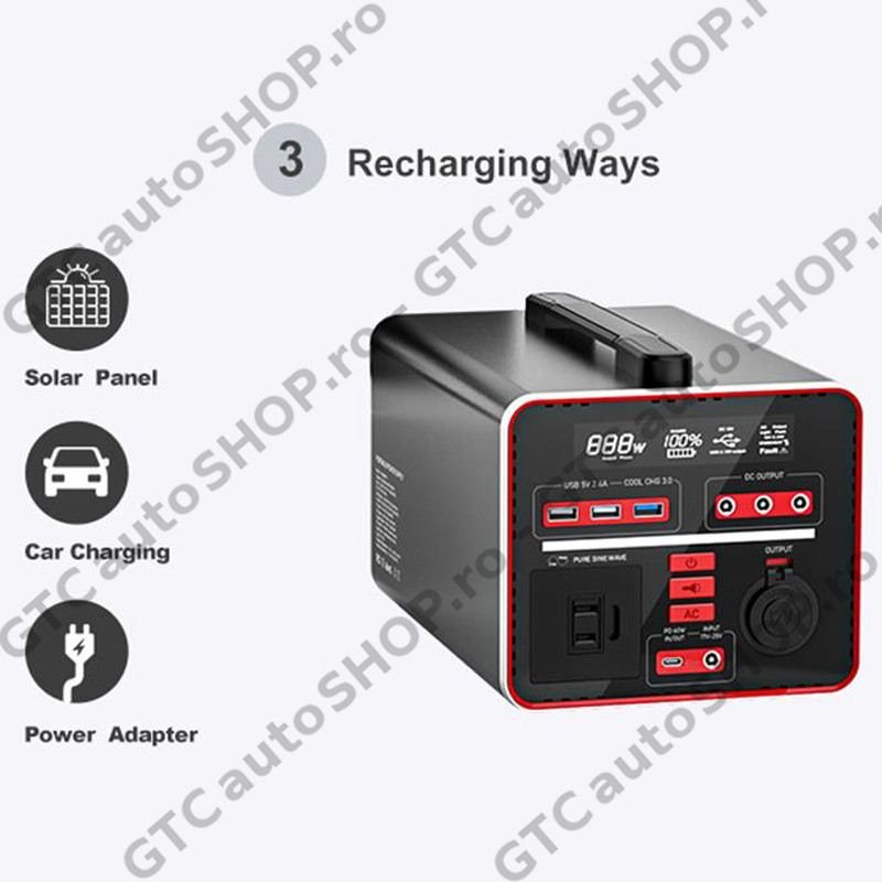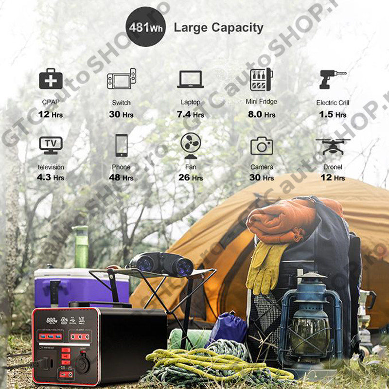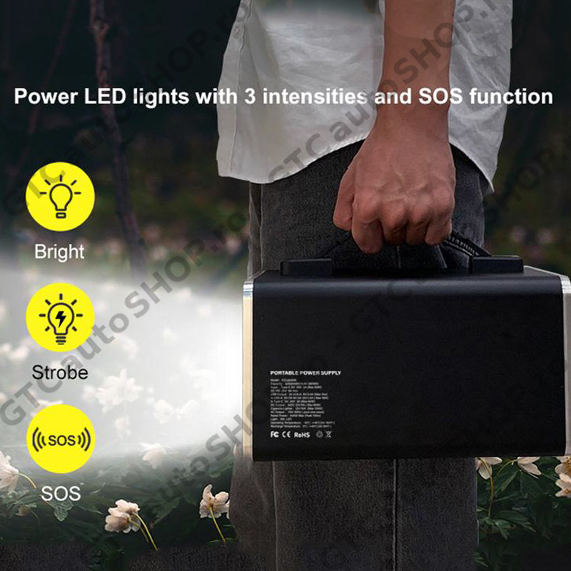 Noua statie electrica portabila de la Raptor 4x4, pe baza de lithium cu o sursa de 481Wh. Este o statie electrica usoara, portabila si compacta ce se reincarca fie de la retea, de la priza 12V sau de la panoul solar. Are o putere de 481Wh (32.5Ah, 14.8V, acumulatori BK18650). Este prevazuta cu trei prize USB, trei iesiri DC 12V, o priza 12V si o priza AC 110/220V curent cu unda sinusoidala pura. Toate prizele si porturile USB din dotare va ajuta sa va incarcati sau sa alimentati echipamentele dvs. precum frigidere auto mini, pompe de aer, TV, telefon, laptop, etc.