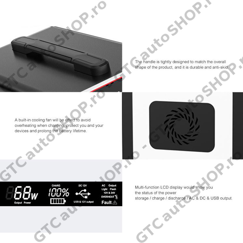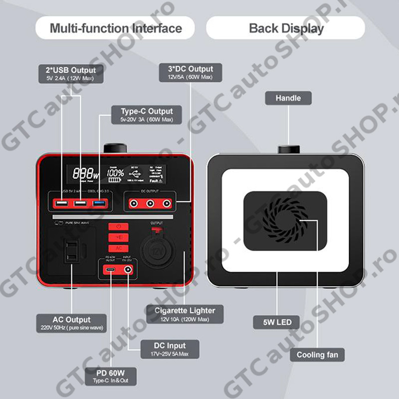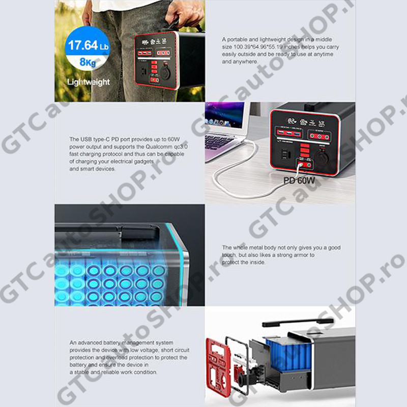 - Intrari: DC / Panou solar 17V~25V 5A Max si Type-C 5V~20V 3A (Max 60W)