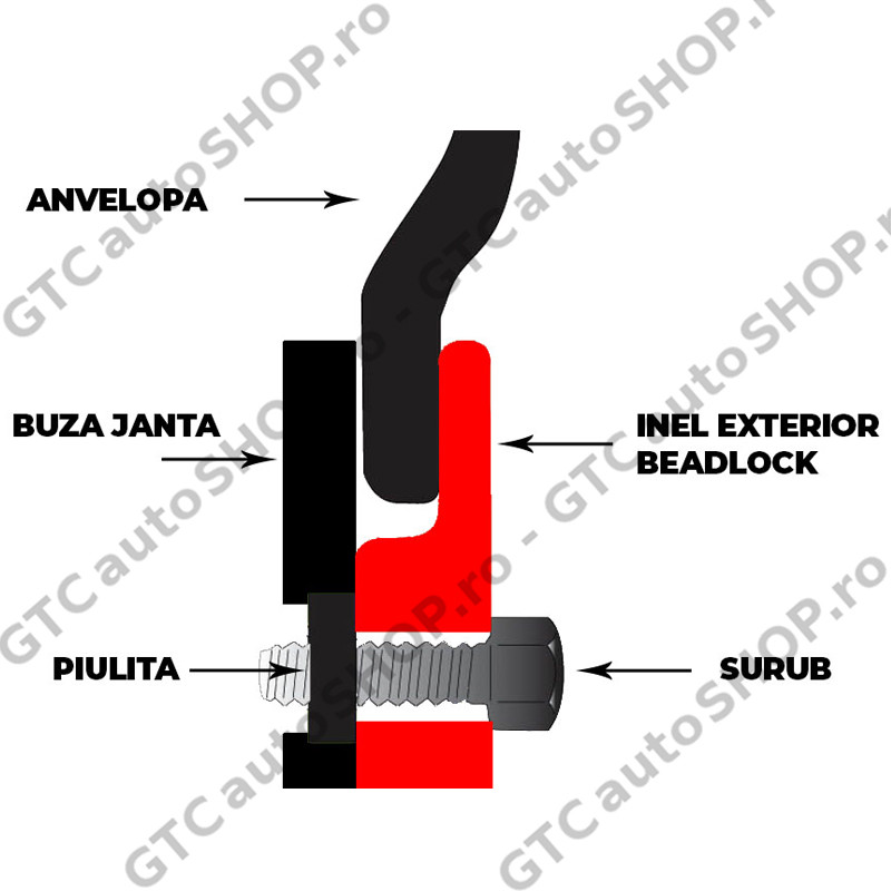 Janta off-road din otel cu beadlock de la OFM, cu urmatoarele specificatii: