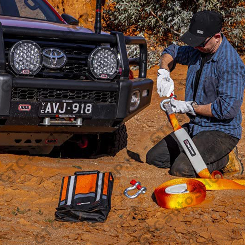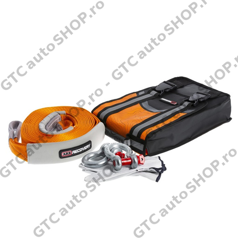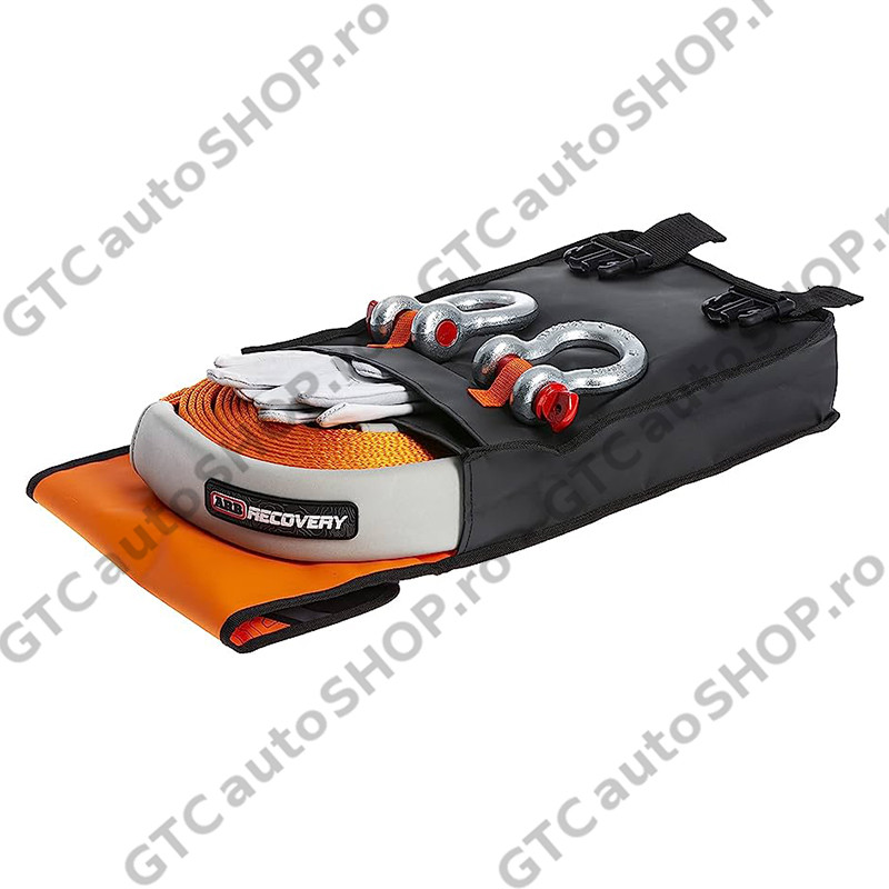 Kitul contine: geanta HD cu rol de a transporta accesoriile dar si rol de contragreutate, o sufa de tractare de 9m-8 tone cu elasticitate 20%, 2 ocheti de 4.75T si o pereche de manusi