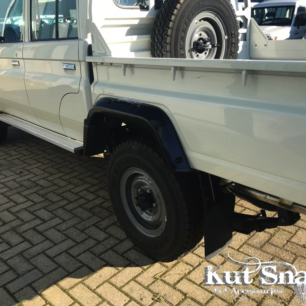 Set aparatori de noroi pentru aripi (overfendere) de la Kut-Snake Australia. Sunt dedicate pentru Toyota Land Cruiser 79 model Pick-up cu cabina dubla, productie 2007-prezent
