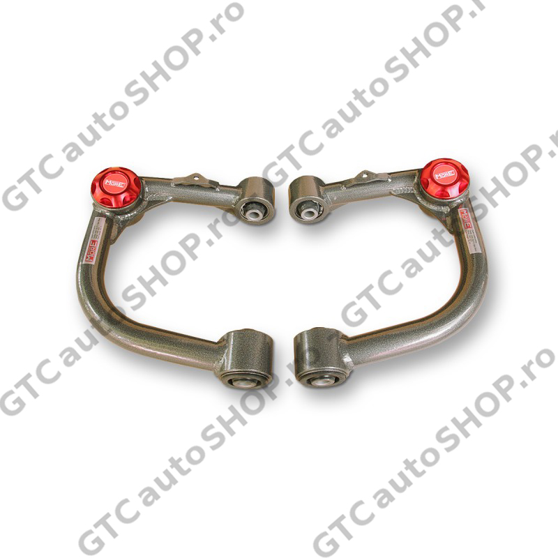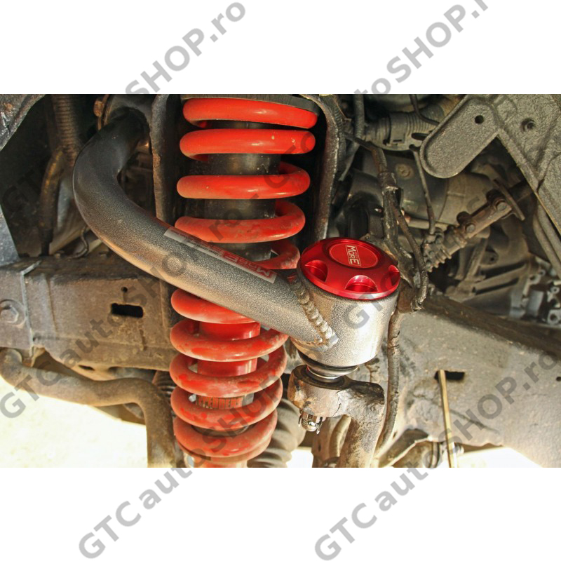 Set de 2 bascule superioare ranforsate, de la More4x4. Sunt proiectate sa asigure repozitionarea corecta a rotilor si deschiderea optima a amortizoarelor la kiturile de suspensie cu inaltare de +5cm.