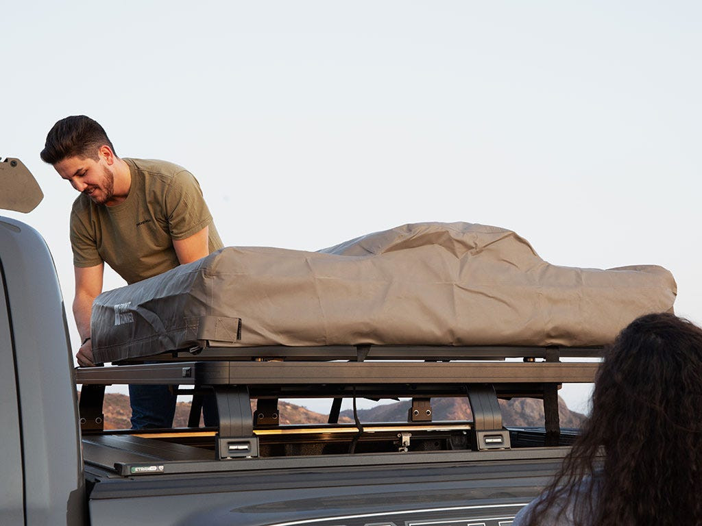 Acest kit creează un portbagaj de dimensiune completă care se montează deasupra benei camionetei Ford F-150 și include tava Slimline II (1575mm x 1762mm) și 6 picioare universale pentru benă Pick-up Truck Bed Universal Legs care se montează în șinele incluse.
