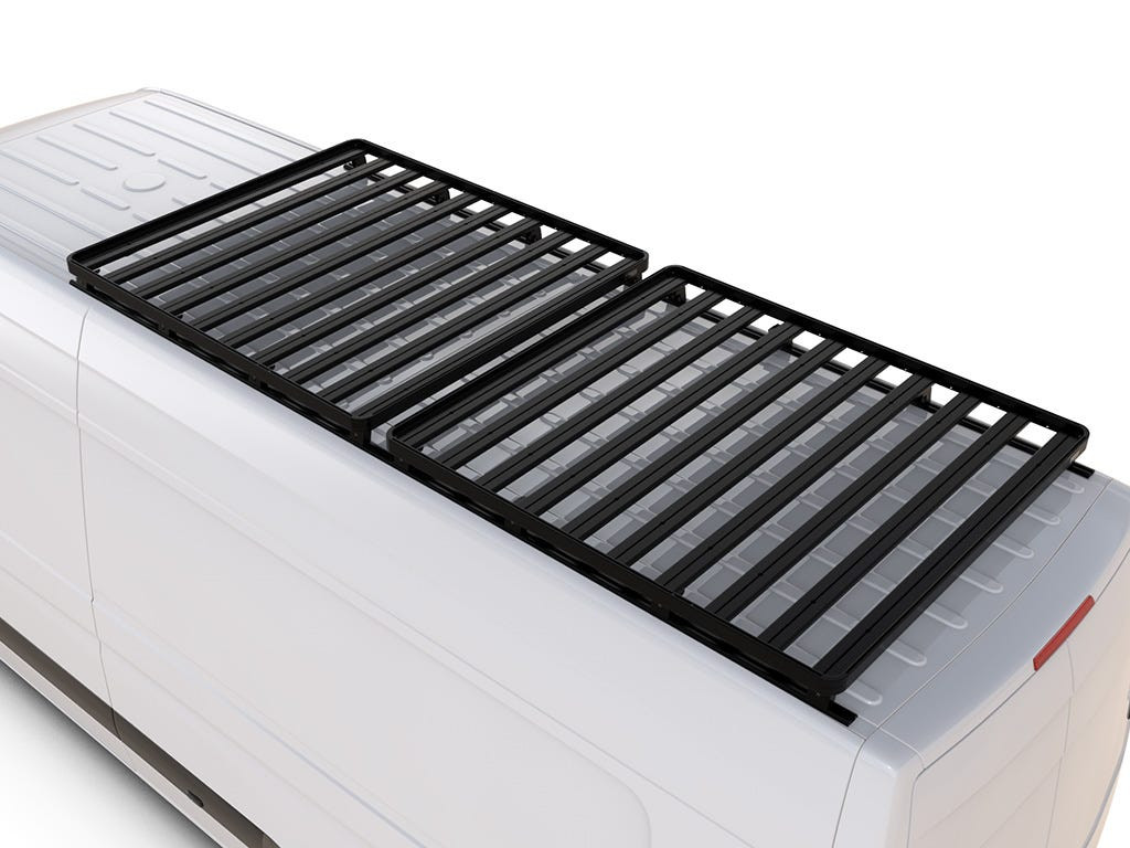 Acest kit portbagaj plafon Slimline II de dimensiune completă, pentru transport marfă, cu lungimea de 3928mm/154.7'', pentru Mercedes-Benz Sprinter fără șine OEM, conține 2 tăvi Slimline II, deflector de vânt, set de șine și 16 picioare.