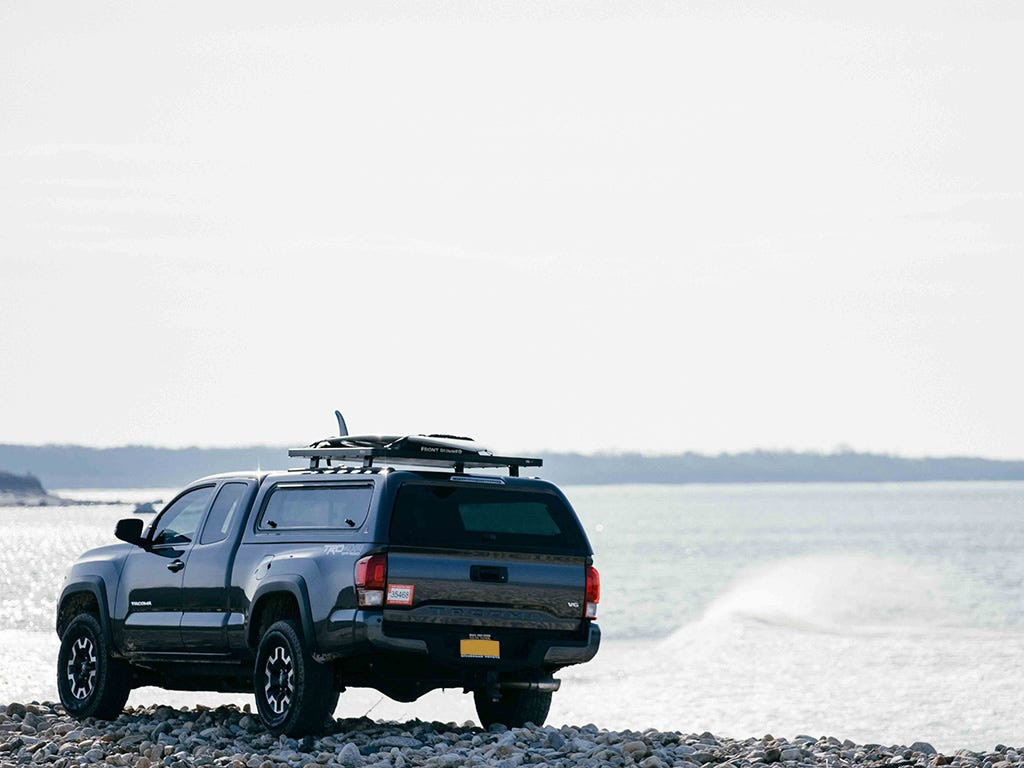 Acest kit de portbagaj este destinat copertinelor hardtop/camper shell/cap pentru pick-up și remorcilor cu dimensiuni ale plafonului de maximum aproximativ 1165 mm/45,9” (lățime) x 954 mm/37,6” (lungime). Platforma Slimline II și cele patru (4) picioare incluse se montează pe șina OEM/de fabrică instalată pe copertina hardtop/carcasa sau pe remorcă.