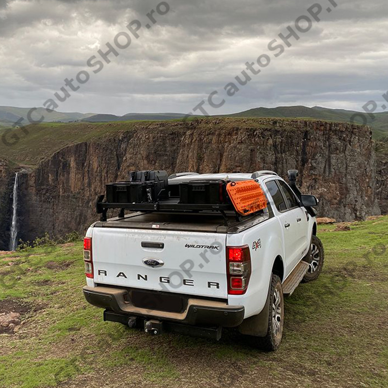 Portbagaj de bena Front Runner Slimline II cu picioare pentru Ford Ranger Wildtrak si Raptor, productie 2012-2022, compatibil doar cu inchidere de bena de tip Roll Cover – usor si rezistent. Sarcina maxima este de 300kg!