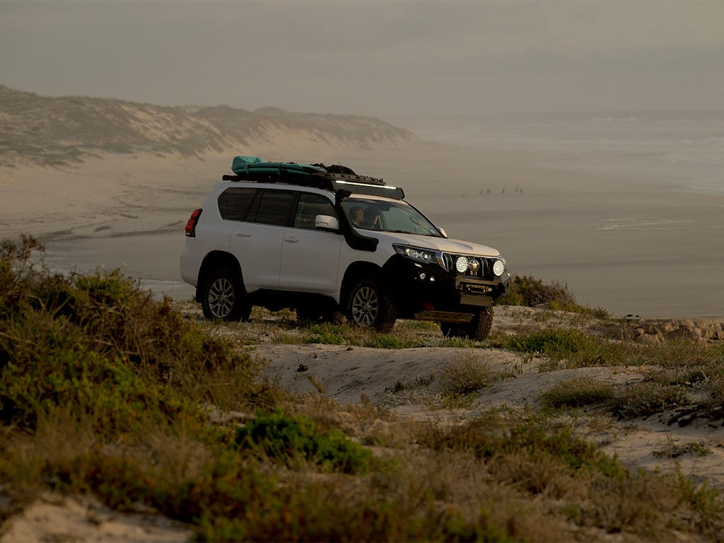 Portbagaj Front Runner Slimsport pentru Toyota Land Cruiser 150, cu pre-echipare pentru montarea unei bare de Led Osram VX-1000 CB SR.