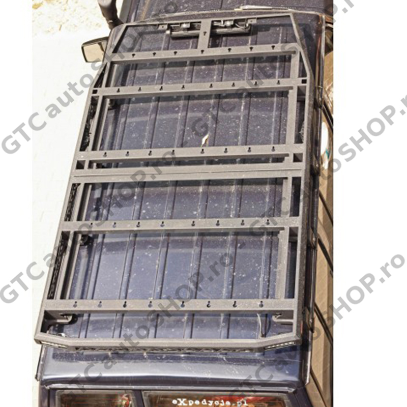 Portbagaj More 4x4 Polonia pentru Toyota Land Cruiser 90, productie 1995-2002, varianta lunga (5 usi). Portbagajul se monteaza cu ajutorul celor 8 picioare pe sinele laterale ale masinii.