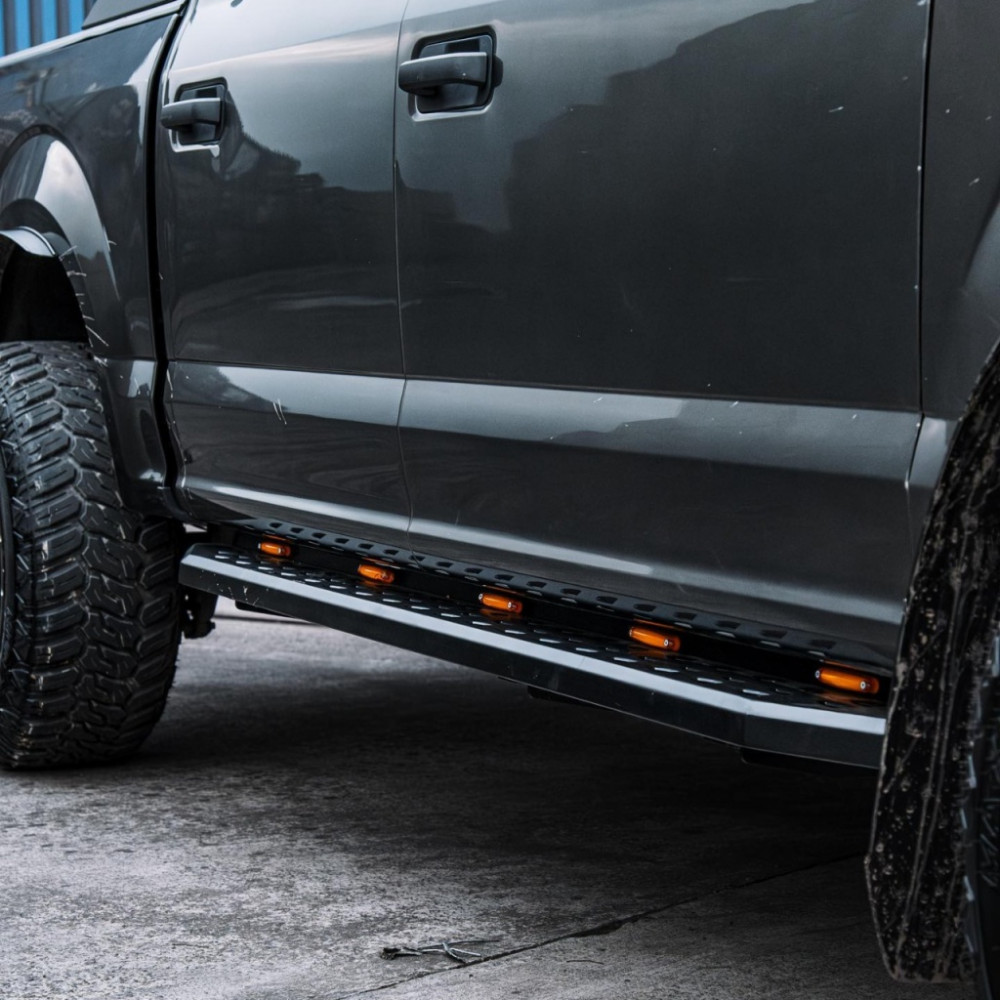 AQM4WD Q30 vine cu dimensiuni și finisaje perfect adaptate pick-up-ului tău, asigurându-se că se integrează perfect în designul acestuia. Cu un design ergonomic și un profil estetic, pragurile laterale nu numai că oferă o cale convenabilă pentru a accesa cabina, dar și adaugă o notă de eleganță la fiecare călătorie.