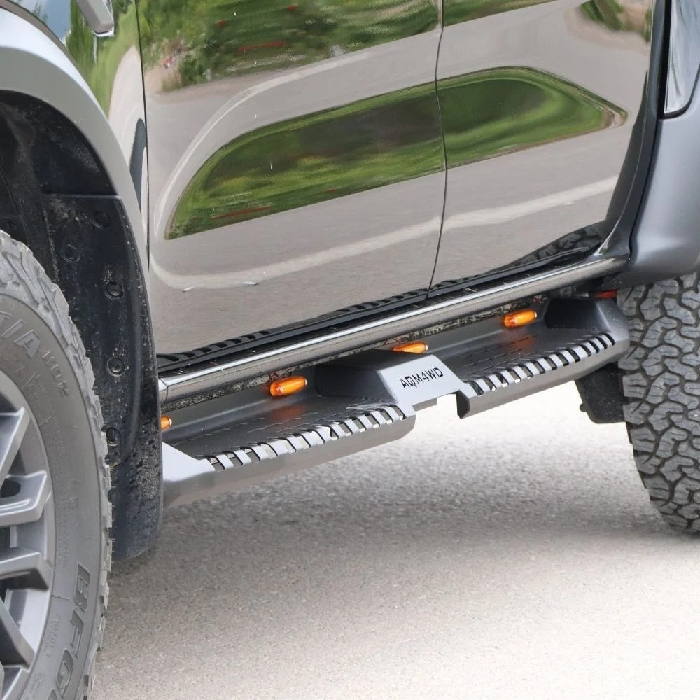 AQM4WD S32 vine cu dimensiuni și finisaje perfect adaptate pick-up-ului tău, asigurându-se că se integrează perfect în designul acestuia. Cu un design ergonomic și un profil estetic, pragurile laterale nu numai că oferă o cale convenabilă pentru a accesa cabina, dar și adaugă o notă de eleganță la fiecare călătorie.