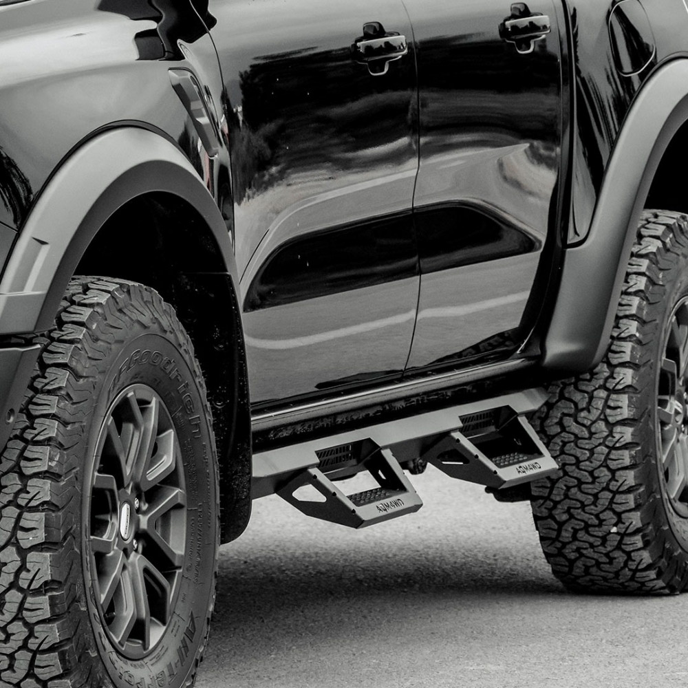 AQM4WD T32 vine cu dimensiuni și finisaje perfect adaptate pick-up-ului tău, asigurându-se că se integrează perfect în designul acestuia. Cu un design ergonomic și un profil estetic, pragurile laterale nu numai că oferă o cale convenabilă pentru a accesa cabina, dar și adaugă o notă de eleganță la fiecare călătorie.
