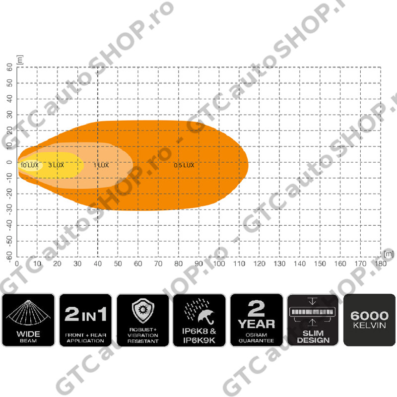 Noua gama de proiectoare si bare LED de la Osram. Proiectorul LED imbunatatit de la OSRAM WL VX100-WD ofera o lumina impresionanta si o performanta ridicata. Lumina difuza a proiectorului este o alegere ideala pentru utilizarea in off-road.