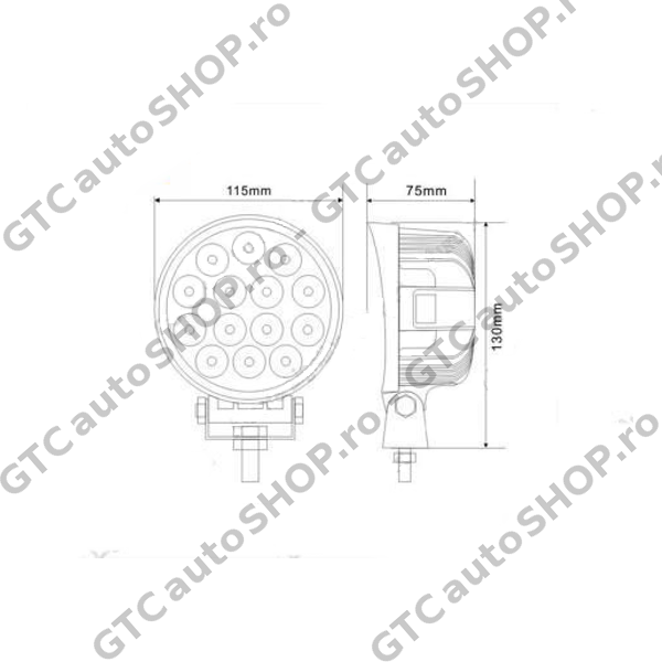 - Dimensiuni (latime x inaltime x adancime): 115 x 115 x 75 mm; inaltimea totala cu suport de prindere = 130 mm