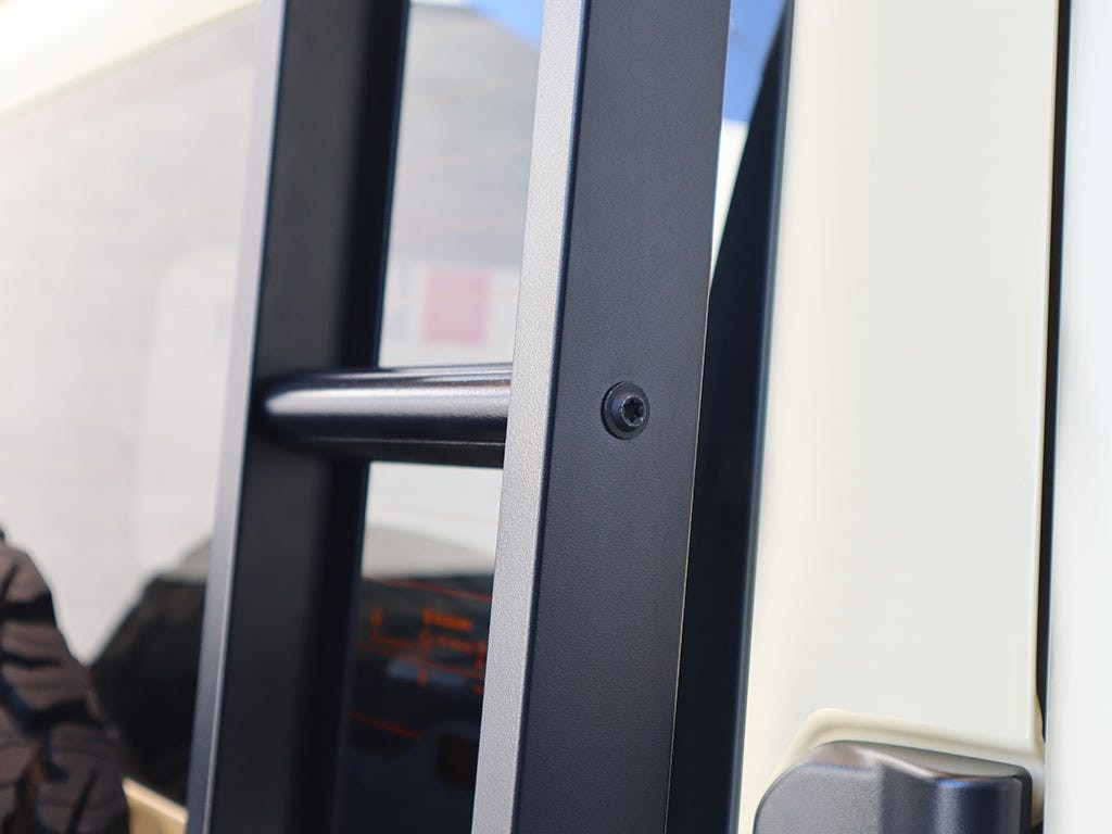 S-ar putea ca Suzuki Jimny sa nu fie cel mai inalt vehicul de teren, dar accesul la echipamentul de pe portbagajul Front Runner ar putea fi totusi dificil. Aceasta scara cu patru trepte faciliteaza accesul la portbagaj. Are mansoane de cauciuc pe treptele superioare si inferioare, este construita pentru off-road si se monteaza in gaurile existente, direct pe usa batanta din spate, fara nicio gaurire.