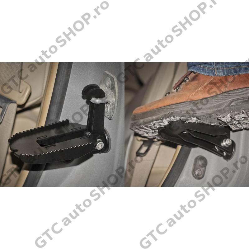 Treapta pliabila este un produs inovator care inlocuieste o scara mara si grea. Atasata la incuietoarea usii, aceasta faciliteaza accesul la portbagaj.