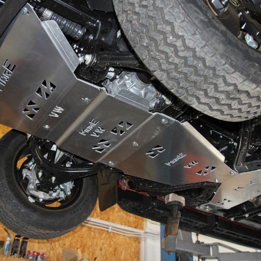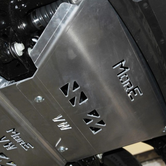 Scuturile de la More4x4 sunt fabricate dintr-un aliaj de aluminiu special, masiv, gros de 6mm care garanteaza stabilitate si robustete maxima la o greutate scazuta. Scuturile sunt taiate, indoite si gaurite la masini computerizate pentru o acuratete dimensionala si estetica.