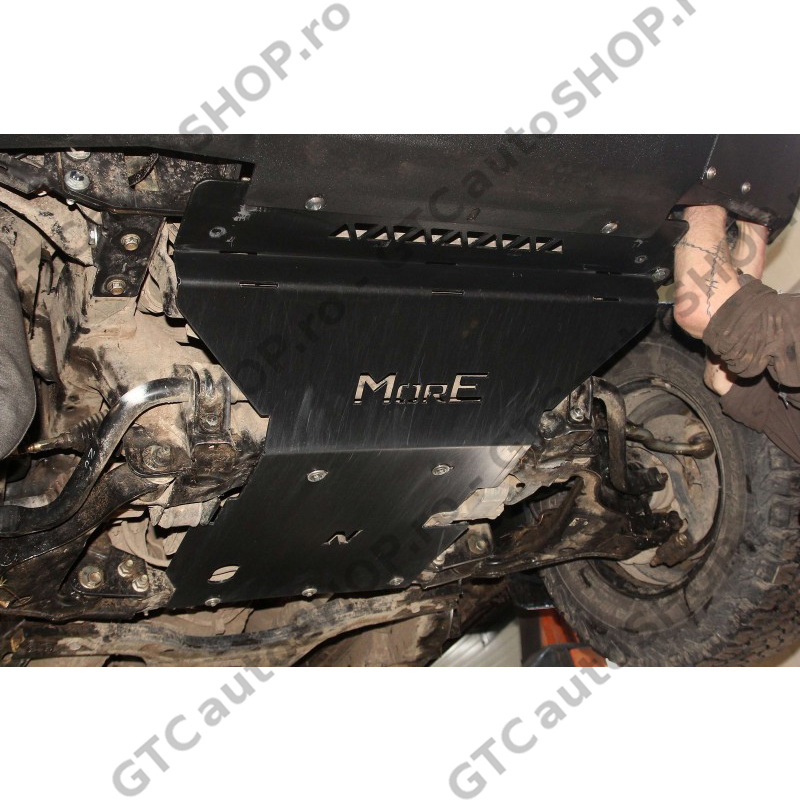 Scut motor aluminiu dedicat Nissan Navara D23 / NP300, productie 2014 - prezent, compatibil doar cu bara fata More4x4.