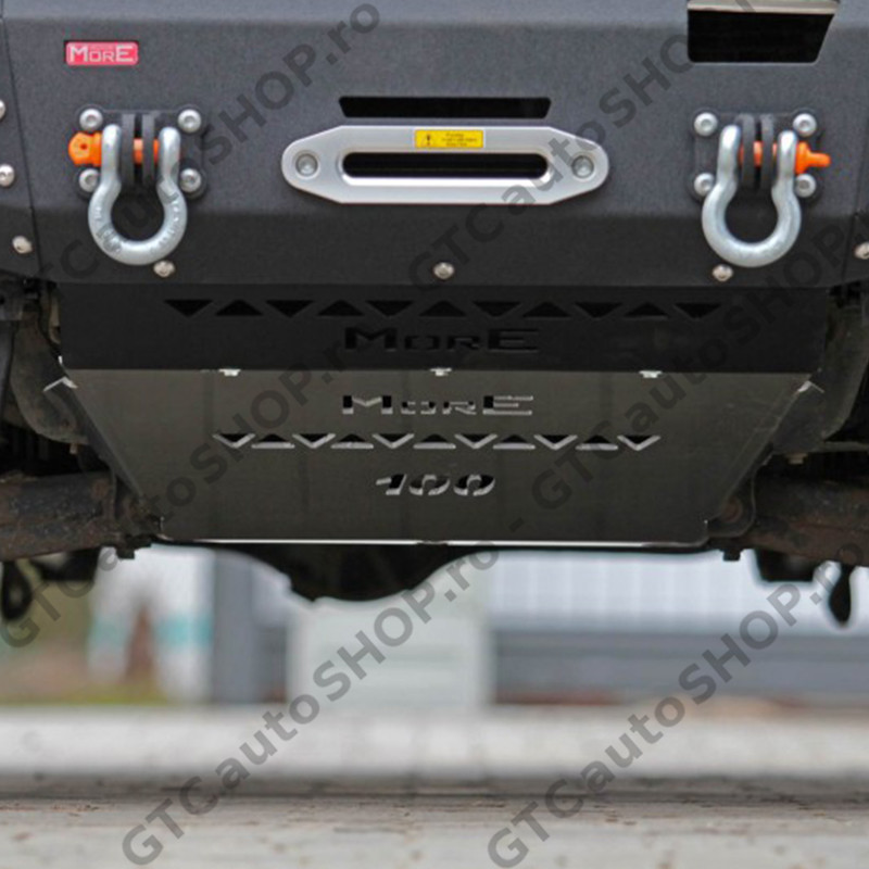 Scutul este dedicat Toyota Land Cruiser J100 si Lexus LX470, productie 1998-2007 , motorizare 4.7 benzina si 4.2 diesel, compatibil doar cu bara fata de metal More4x4. Se poate cumpara si set (scut motor + scut transmisie).