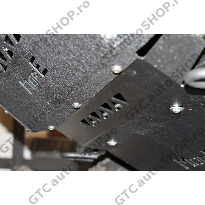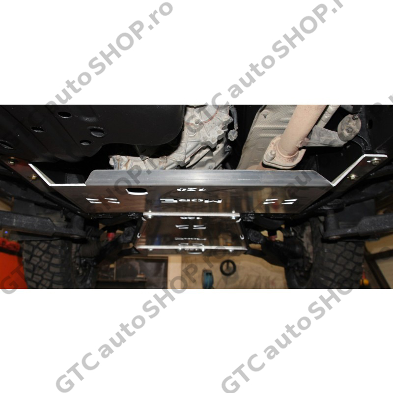 Setul de scuturi este compatibil cu Toyota Land Cruiser J120 productie 2002-2009, versiune SWB si LWB, motorizare Diesel. Setul de scuturi contine 3 scuturi: motor, cutie viteze si cutie transfer (reductor).