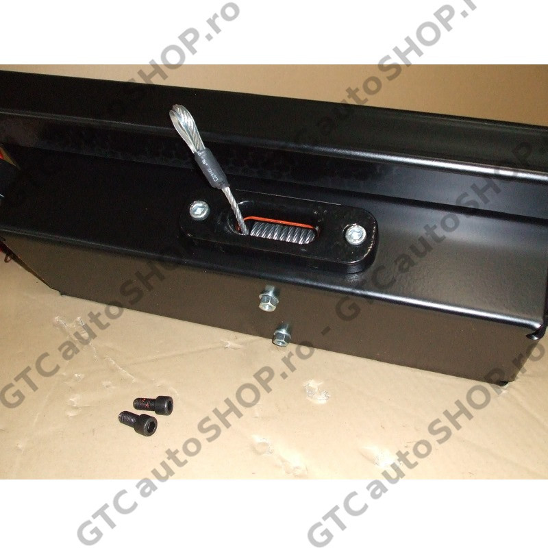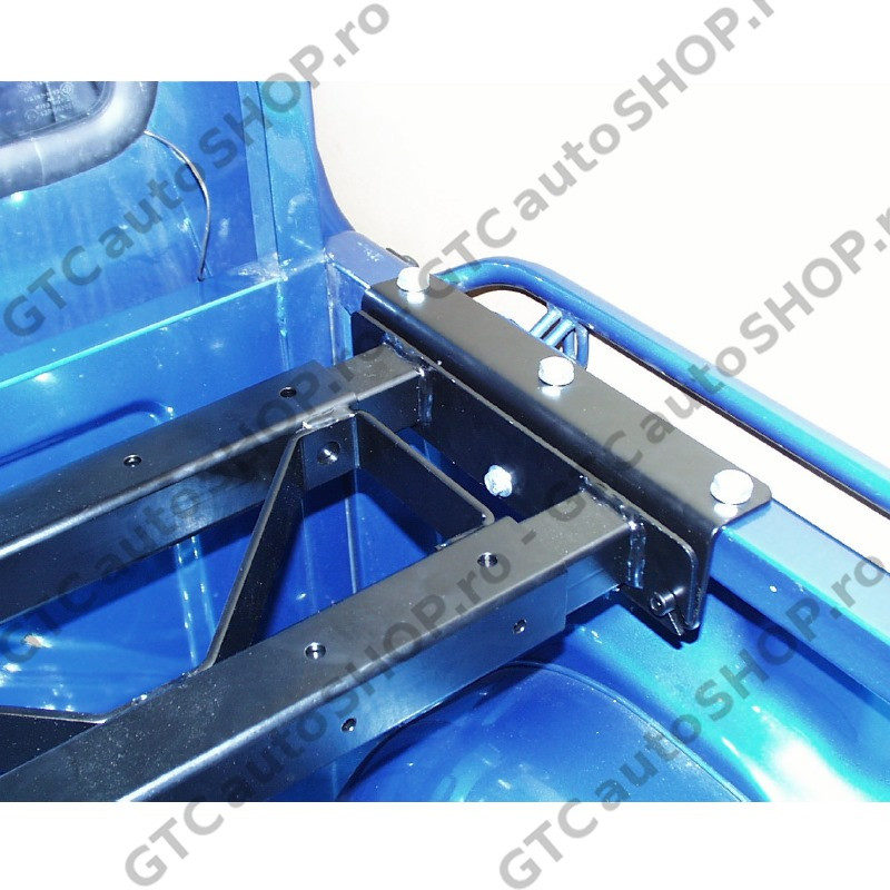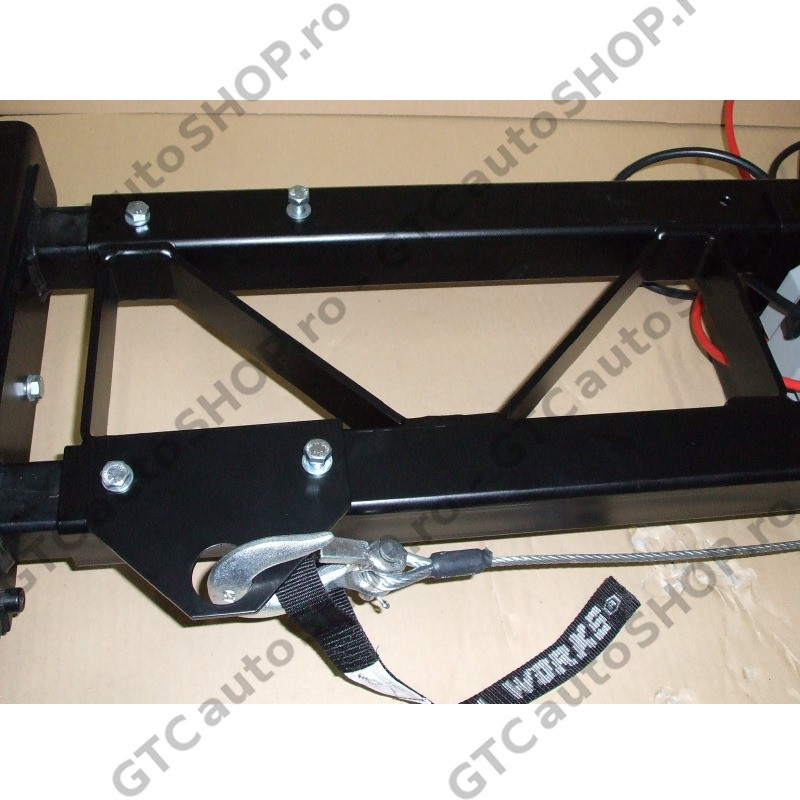 Sistemul este compus din suportul metalic fixat de marginile benei si troliul Warn Works 2000, actionat cu telecomanda.