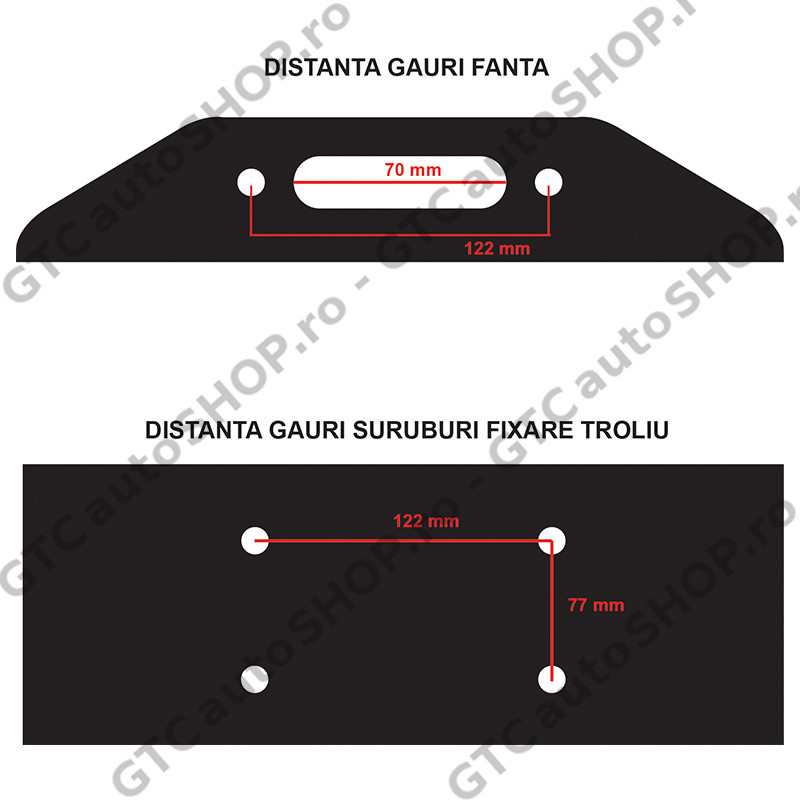 - distanta intre gaurile de prindere troliu: 122 x 77 mm