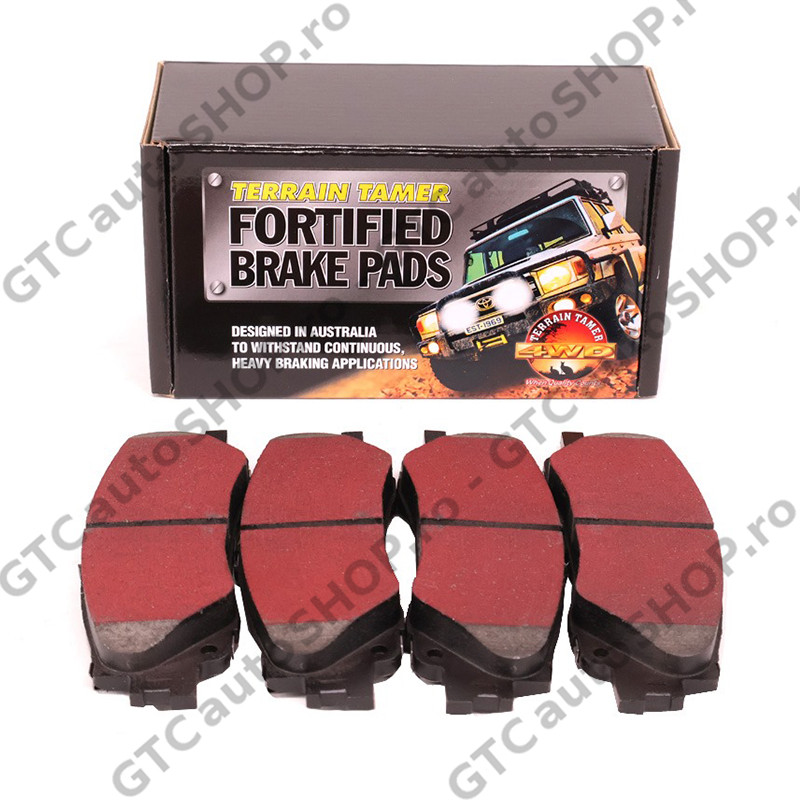 Placute de frana heavy-duty Terrain Tamer Fortified, cu formula imbunatatita pentru masini supra-incarcate sau solicitari de franare mai mari. Ideale pentru montarea cu discurile de frana Terrain Tamer High Performance, dar nu numai.
