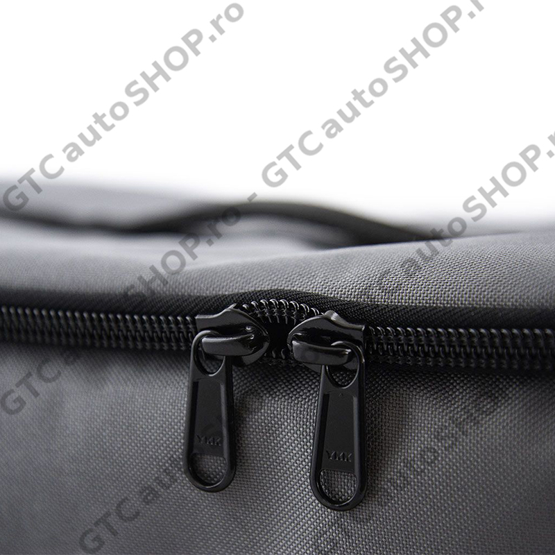 - Confectionata din material textil tip canvas (duritate crescuta), pereti din plastic rezistent si interior din vinyl