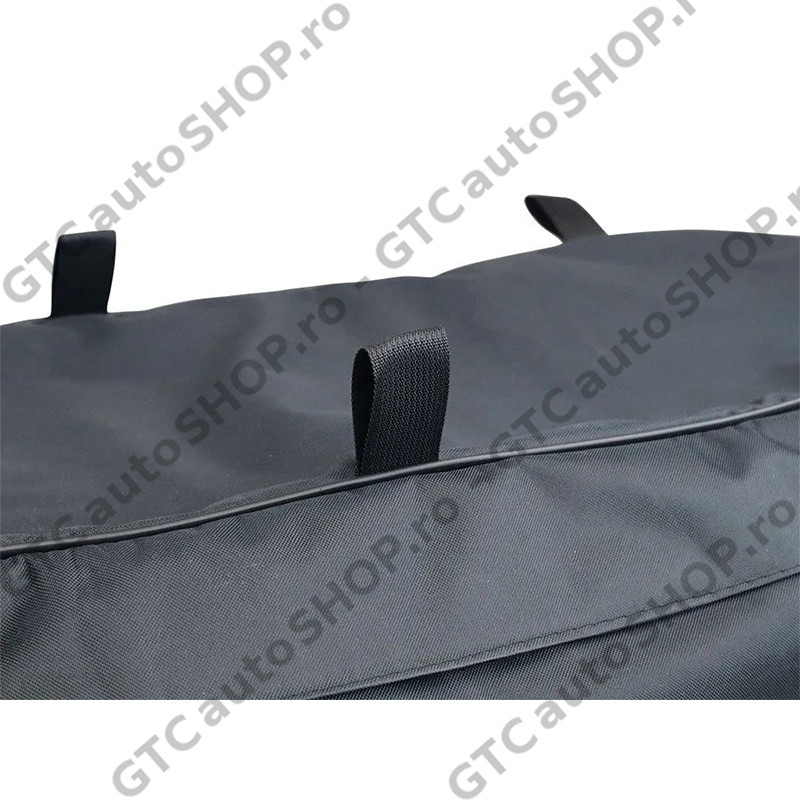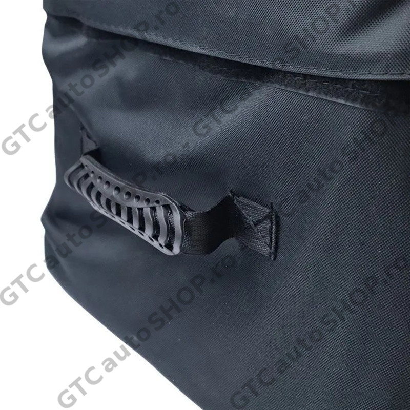 Eliberati spatiul din interiorul masinii cu aceasta geanta de depozitare si transport flexibila, robusta usoara si mare. Ideala pentru haine, echipamente de camping, cutii Wolf Pack si Cub Pack sau alte obiecte ce pot fi transportate pe portbagajul autovehiculului.