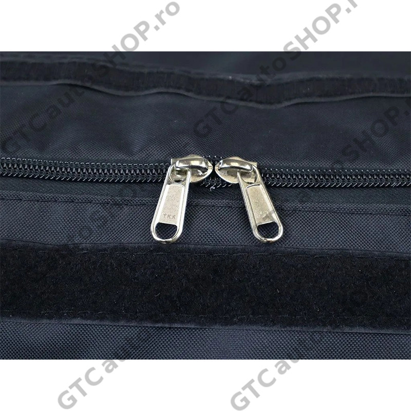 Cusaturile din naylon asigura impermeabilitate si ofera protectie impotriva putrezirii sau deteriorarii. Fermoarele sunt protejate de o tesatura suplimentara prevazuta cu arici pentru folosire usoara. Se poate transporta de catre o singura persoana avand doua manere de cauciuc ce fac mai usoara incarcarea si descarcarea echipamentelor.