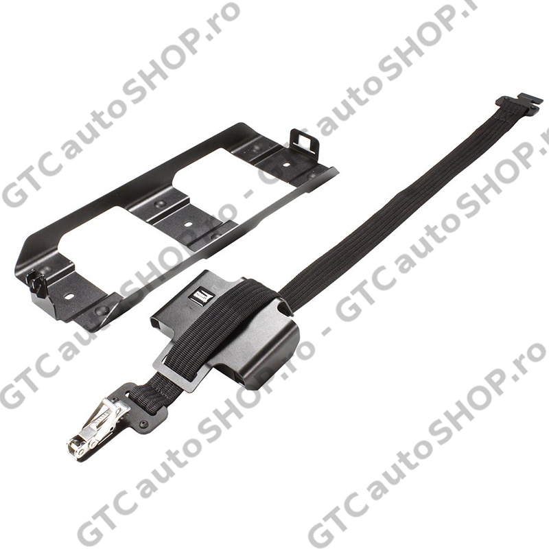Setul contine: baza suportului, cureaua de siguranta cu zavor, accesorii si instructiuni pentru montaj