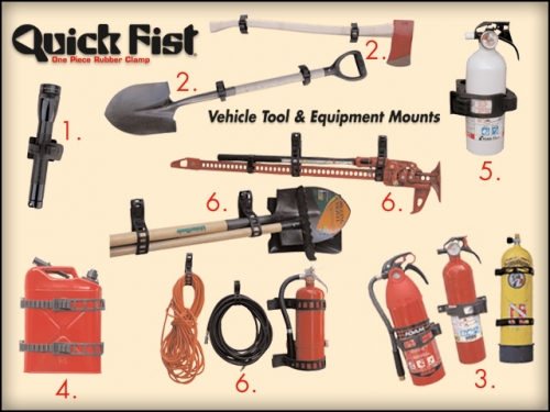 Quick Fist este un produs inovator, extrem de util pentru a fixa diverse obiecte dintr-o masina de off-road: Hi-Lift, lopata, topor, extinctor, canistra combustibil, rezervor de apa, lanterna, ciocan, bare de directie de rezerva, etc.