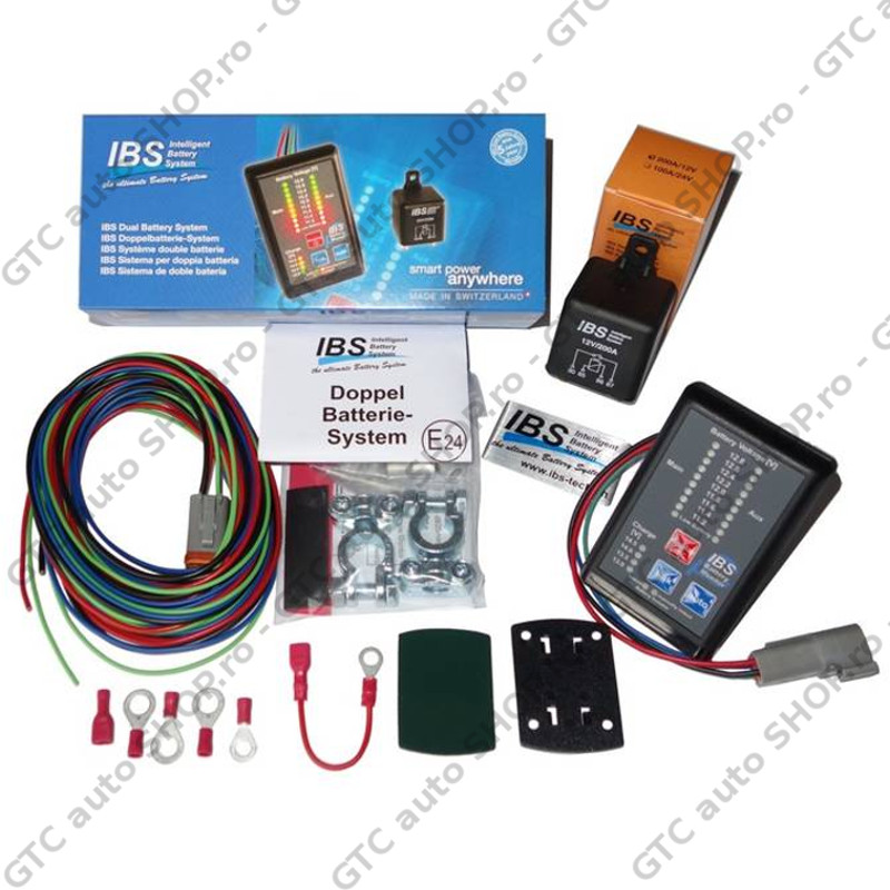 Sistemul IBS- DBS 12V este destinat montarii pe masina a unei baterii suplimentare si gestionarii incarcarii celor 2 baterii. Este dotat cu microprocessor si cu un monitor complex, care afiseaza / activeaza mai multe functii: