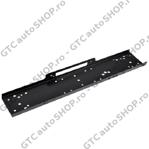 Placa de troliu universala destinata montarii unui troliu de tip standard - cu distanta intre suruburile de fixare a fantei de 25 cm (sarcina 9000 -13000 lbs); lungime placa: 92 cm.
