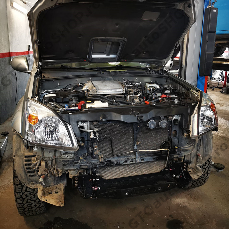 Se va executa o decupare a barei masinii, pentru a se putea monta suportul cu role sau fanta de aluminiu / otel a troliului. Se va reloca suportul pentru numarul de inmatriculare.