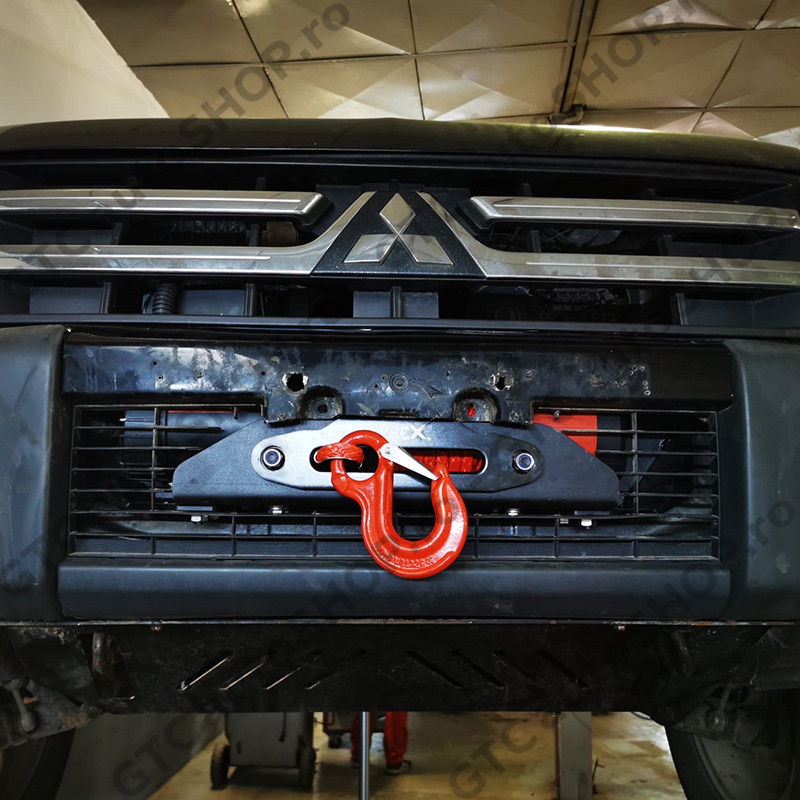 Suport de troliu More 4x4 dedicat Mitsubishi Pajero MK4 V80 fabricatie dupa 2007, permite montarea discreta a troliului, ascuns in bara originala a masinii