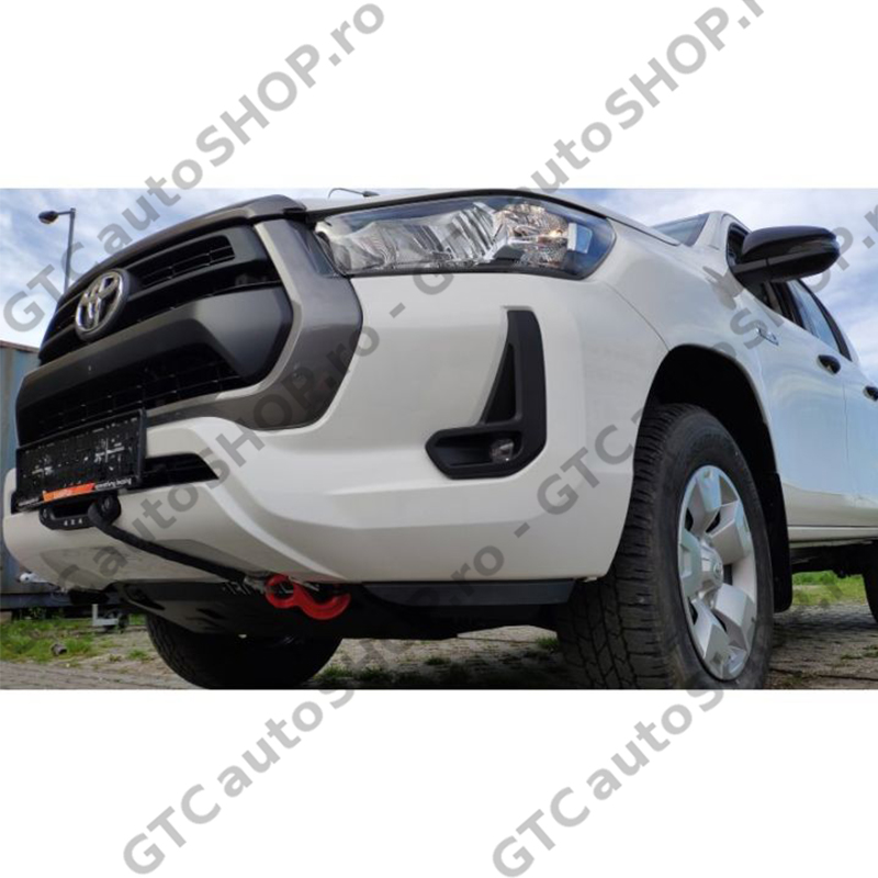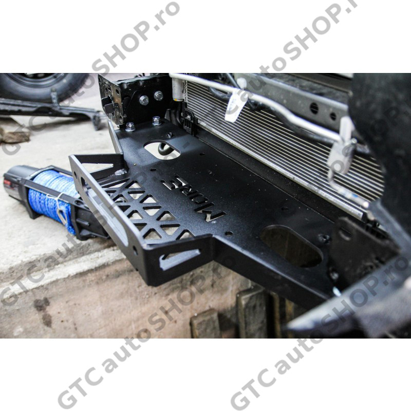Suport de troliu More 4x4 dedicat Toyota Hilux Revo fabricatie dupa 2020, permite montarea discreta a troliului, ascuns in bara originala a masinii