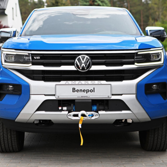 Suport de troliu More 4x4 dedicat Volkswagen Amarok fabricatie 2022 - prezent, permite montarea discreta a unui troliu pastrand aspectul general al masinii si folosind bara de origine.