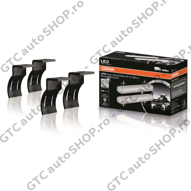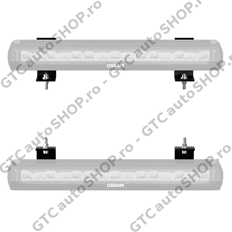 Suporti pentru montarea barelor LED de la Osram, gama FX din generatia noua (Gen2). In set exista doua variante de suporti, ambele variante se monteaza pe spatele barei LED, fie in partea de sus, fie in partea de jos.