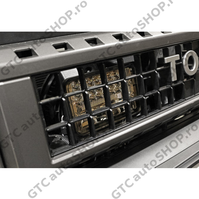 Suportul de proiectoare permite instalarea de iluminat suplimentar atat in fata, cat si in spatele grilei la Toyota Land Cruiser J250.