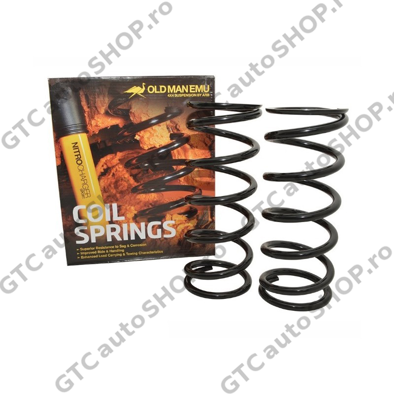 Arcuri elicoidale OME: OME ofera mai multe variante de arcuri pentru fiecare vehicul 4x4, tinand cont de incarcarea suplimentara pe care acesta a primit-o datorita montarii diverselor accesorii: bare, trolii, portbagaje, corturi pe plafon, rezervoare suplimentare, etc. Arcurile elicoidale sunt sablate cu jet de alice pentru a reduce tensiunea superficiala si vopsite cu un strat rezistent de vopsea speciala.