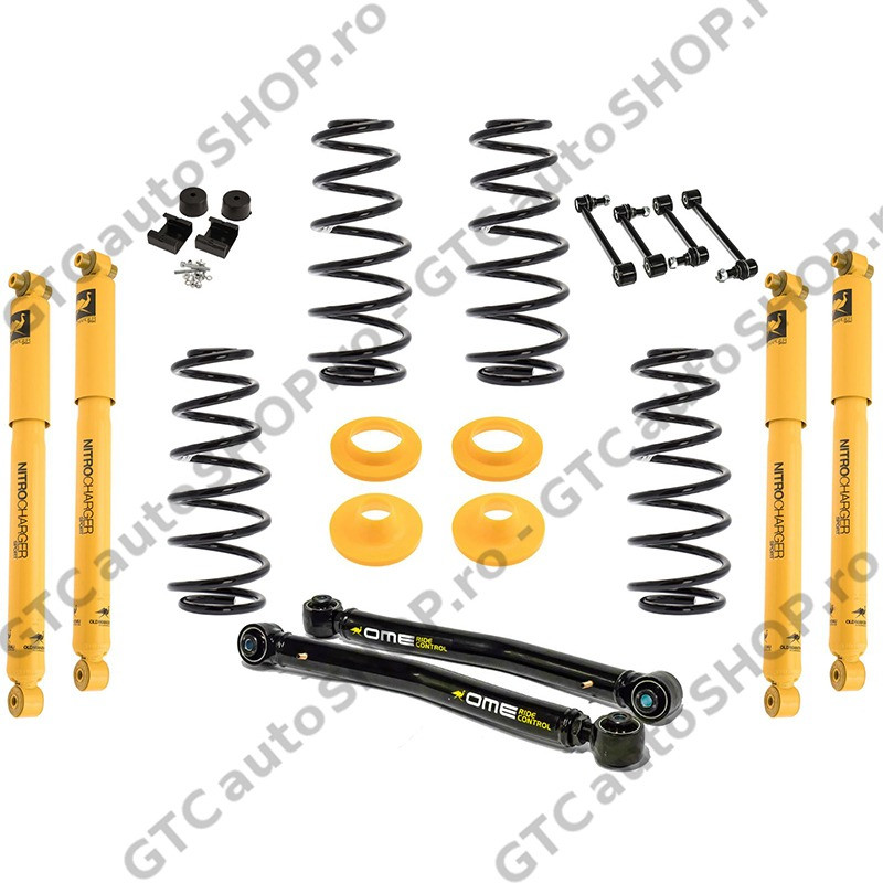 Kit suspensie OME cu amortizoare Nitrocharger Sport pentru Jeep Wrangler JL, care ofera o inaltare de 3.5 inch / 9 cm pentru JL/JLU Sahara si Sport si o inaltare de 2.5inch / 6.5 cm pentru JL/JLU Rubicon.
