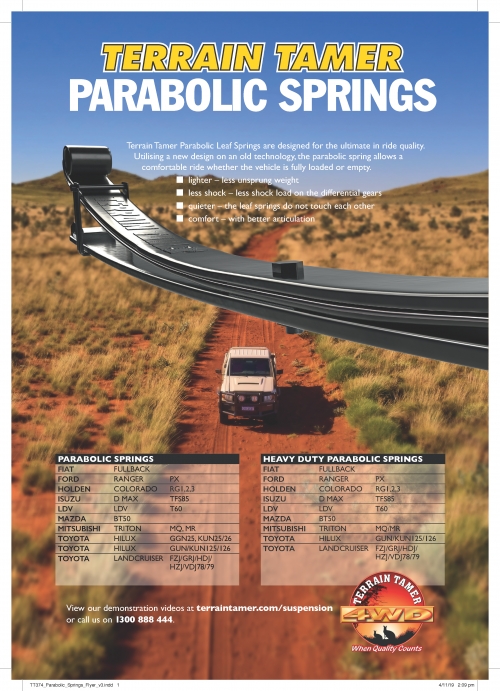 Arcurile cu foi Parabolic Springs de la Terrain Tamer Australia sunt noua generatie de arcuri cu foi care aduce inbunatatiri substantiale, in special de confort si performante off-road.