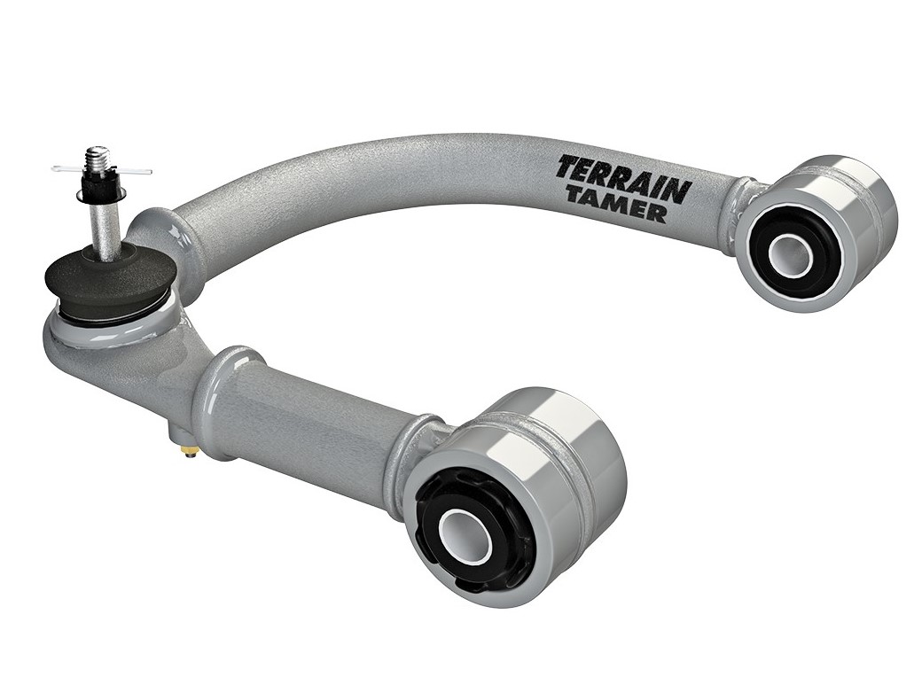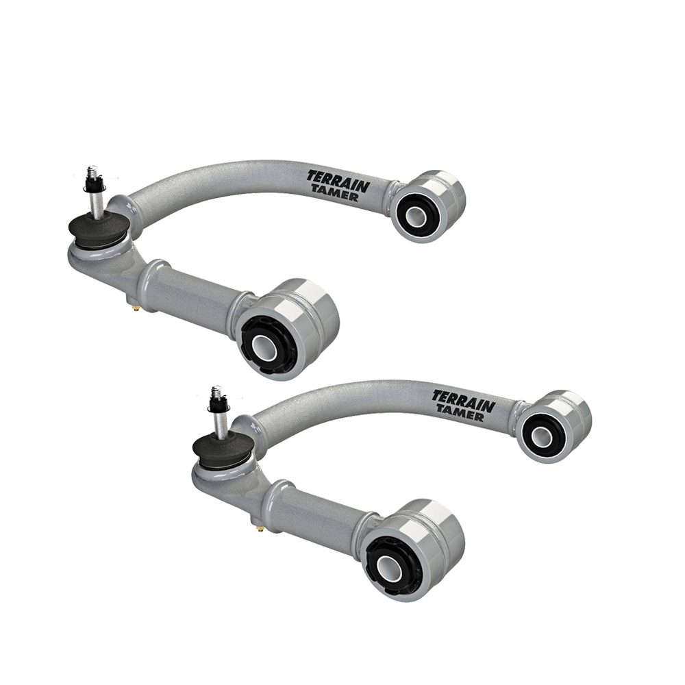 Set de 2 bascule superioare modificate, de la Terrain Tamer Australia, proiectate sa asigure pozitionarea corecta a rotilor si deschiderea optima a amortizoarelor la kiturile de suspensie cu inaltare de 4-5 cm.