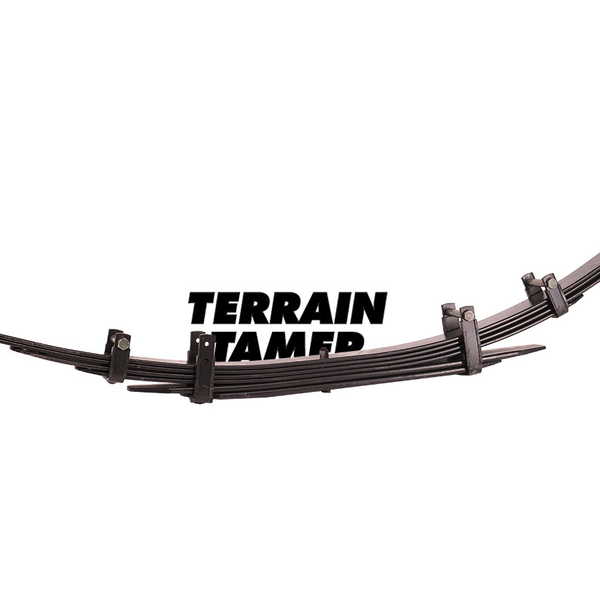 Arcurile lamelare cu foi Terrain Tamer sunt de calitate foarte buna si sunt proiectate sa lucreze optim cu restul componentelor kiturilor de suspensie Terrain Tamer. Accesorii complementare arcuri foi: bucsi, bride U si cercei/pini gresabili. Arcurile lamelare au pastile antifrictiune intre foi, din poliuretan, pentru a reduce zgomotul ce poate apare in functionare.