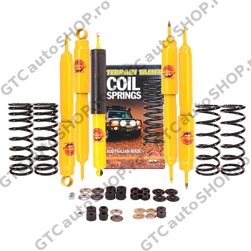 Kit suspensie premium Terrain Tamer Australia pentru Land Rover Defender 90, fabricatie de la 2003, ce asigura inaltarea masinii cu 4 cm.