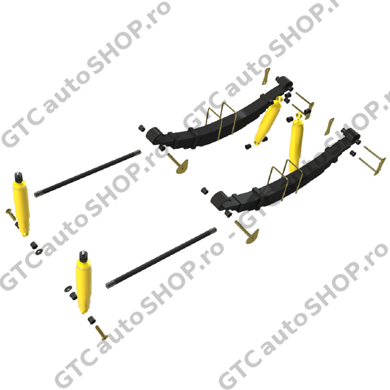 2. Arcurile cu foi spate au preturi diferite, functie de incarcarea suportata. Kitul prezentat are arcurile lamelare de pana la +200kg incarcare suplimentara constanta.
