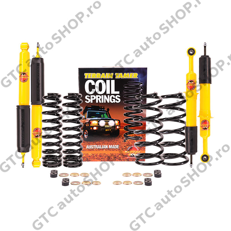 Kit suspensie premium Terrain Tamer Australia pentru Toyota FJ Cruiser SJ10, fabricatie 2007-2010, ce asigura inaltarea masinii cu 4-5 cm.